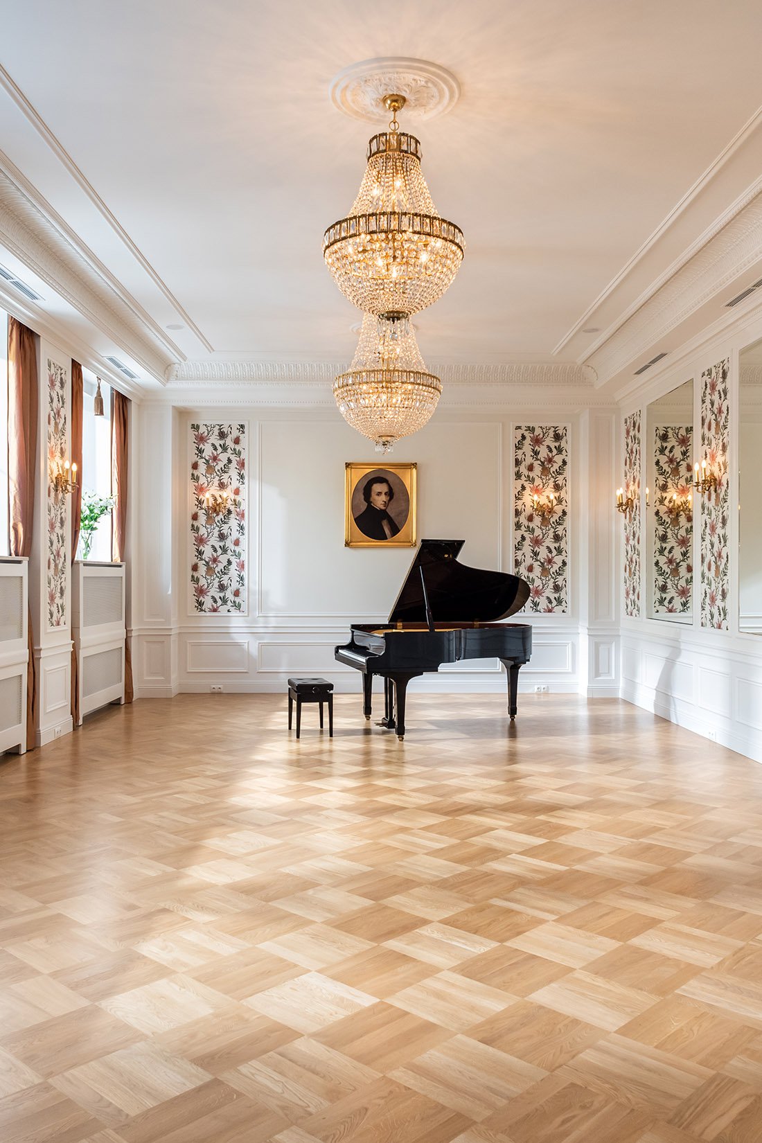 Kameralna neoklasycystyczna sala koncertowa stworzona z dbałością o szczegóły, aby codziennie przybliżać gościom twórczość Fryderyka Chopina.